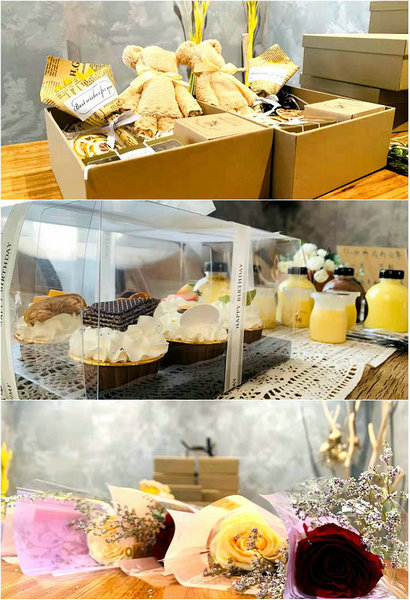 哈铁局团委精心准备的玫瑰花、甜品及欧舒丹伴手礼