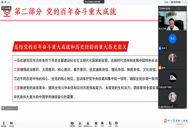 12月14日下午,按照齐医学院党委的总体部署,齐医附属二院党委组织召开了第二场党的十九届六中全会精神线上主题宣讲会,院长、党委副书记武立刚同志作宣讲,全体领导班子成员及中层干部近200人参加会议,宣传科科长高秀文主持宣讲会。