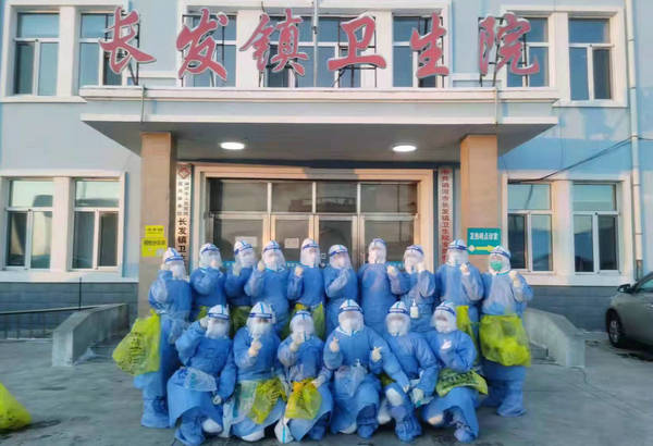 齐医附属二院支援讷河市核酸采集队在讷河市抗疫一线合影