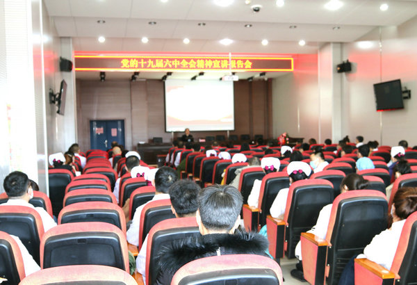 12月17日下午,齐医附属二院邀请市委党校副校长、市委讲师团副团长张艳教授,在临床技能中心多功能厅作党的十九届六中全会精神宣讲报告。医院党委书记丁国旭主持报告会并讲话,院长、党委副书记武立刚、副院长鲍红光、赵玉环、纪委书记李亚洲及各支部书记、支部委员聆听本次报告。