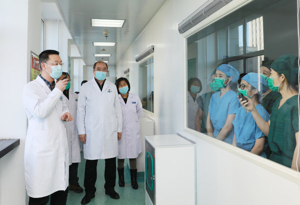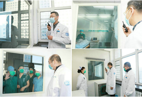 院长、党委副书记武立刚、副院长鲍红光等与舱内医务人员亲切交流