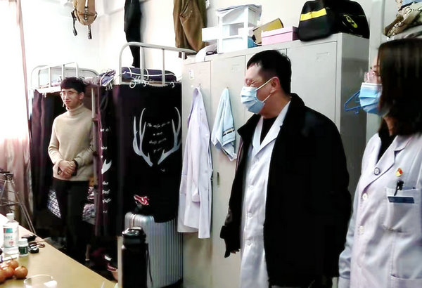 12月18日上午,齐医附属二院副院长刘波在学生科副科长才艳雪、教务科科长金晓秋等人的陪同下,检查走访了学生公寓,全面细致了解了学生的学习和生活情况,同时对宿舍安全卫生、寝室风貌等方面进行检查督导。