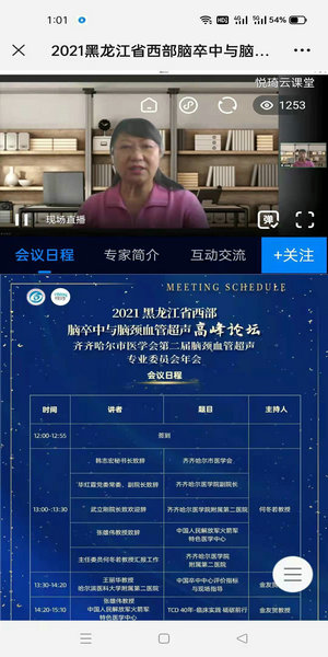 “2021黑龙江省西部脑卒中与脑颈血管超声高峰论坛”暨“齐齐哈尔市医学会第二届脑颈血管超声专业委员会年会”线上会议现场