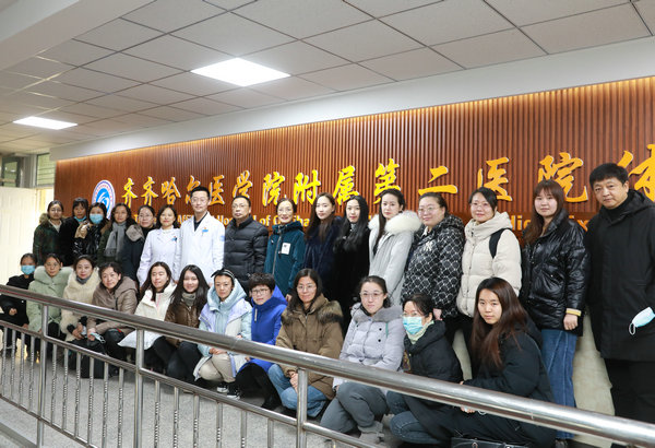 齐医附属二院院长、党委副书记武立刚等与齐齐哈尔市卫生学校副校长李连庆及参加临床实践教师合影