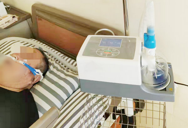 谢先生患有肺源性心脏病10余年,长年反复咳嗽、咳痰、气促,近期病情加重,出现胸闷、气急、嗜睡等呼吸衰竭症状,谢先生在家人的陪同下,前来呼吸内科二病区就诊治疗,得知谢某曾在我市当地多家医院就诊治疗,多次行无创及有创呼吸机辅助治疗,在无创呼吸机临床治疗中,谢先生出现了不耐受、效果差等问题,而有创呼吸机治疗,需转至重症监护室进行气管插管机械通气治疗。入院后,谢先生的血气分析提示为Ⅱ型呼吸衰竭,面临这种情况,李鹏主任立即为患者行经鼻高流量氧疗(HFNC),该氧疗最大吸气流速可达到40-60L/min,为患者提供精确有效的吸入氧浓度,经过半小时持续高流量氧疗后,患者的血氧饱和度从62%升至99%,患者感觉舒适、能耐受,还能有效解决长期无创通气不能耐受的问题。