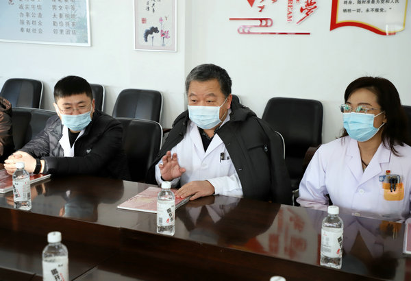 齐齐哈尔工程学院工会主席姜岩等一行10余人来院捐赠寒衣,与医院领导亲切交流