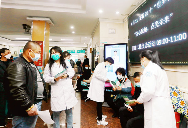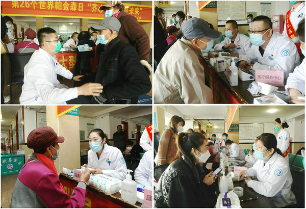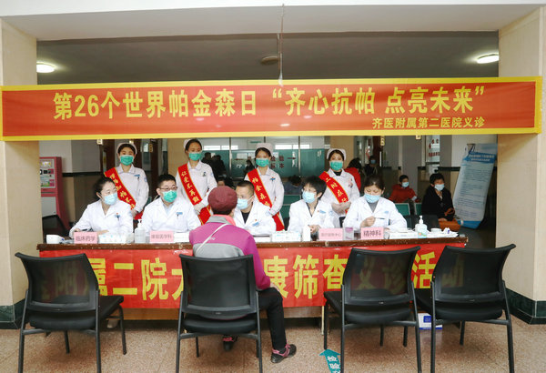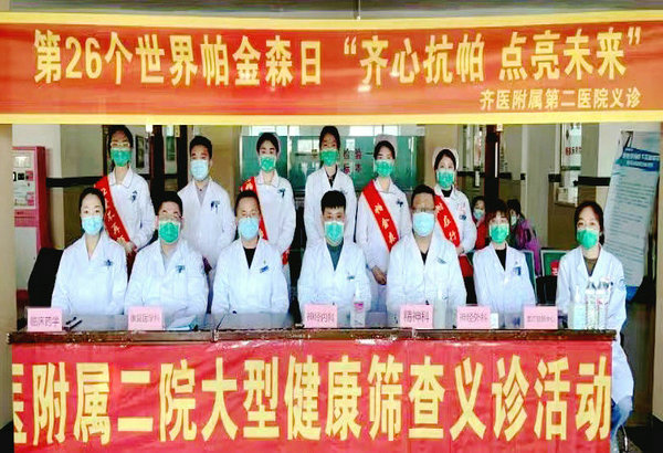 4月11日,第26个世界帕金森日到来之际,齐医附属二院神经内科二病区联合康复医学科、药学部、神经外科、保健科、医疗服务中心、精神卫生中心男二病区等多个科室,在门诊二楼举行“齐心抗帕,点亮未来”大型健康筛查义诊活动。