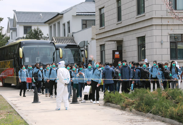 载着抗疫英雄的大巴车缓缓驶入隔离观察点