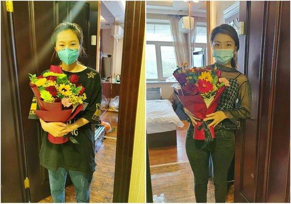 医院为抗疫勇士们送去鲜花