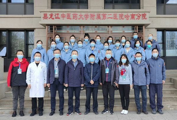 省卫健委、黑龙江中医药大学附属第二医院等领导与齐医附属二院部分救治医疗队员合影留念