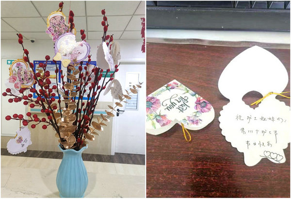 活动中,各科室医生、患者及患者家属将“护士节快乐”“祝你们健康美丽”“祝你们永远幸福”等寄语写在卡片中,并挂上枝头。患者及家属们纷纷表示:“因为有护士们细心的照顾,让患者们的心情变的很好,病情得以迅速康复,此次活动举办的非常有意义,很新颖,也给了我们一个表达谢意的机会。”在过去一年,内科第二党支部的护士们为医院的建设发展做出了卓越贡献。她们是抗疫战场上的一线人员,是心脑血管疾病护理学的专业人士,是医师身边最强的辅助,是患者及家属最为信赖的帮手。今天,医生和患者将寄语卡片作为点缀的花叶,以表达对白衣天使们的感谢。