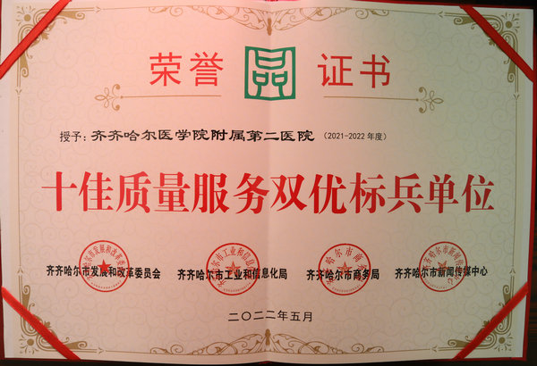 齐医附属二院荣获2021—2022年度“十佳质量服务双优标兵单位”称号