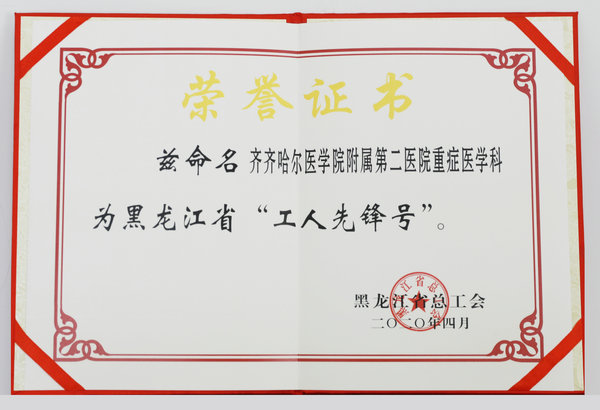 重症医学科被授予黑龙江省“工人先锋号”称号