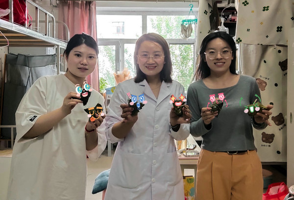 学生科副科长才艳雪为2022届毕业生送上温情满满的粽子