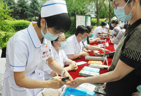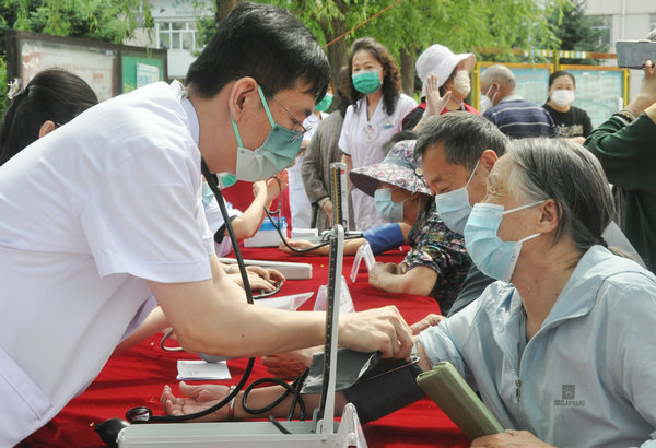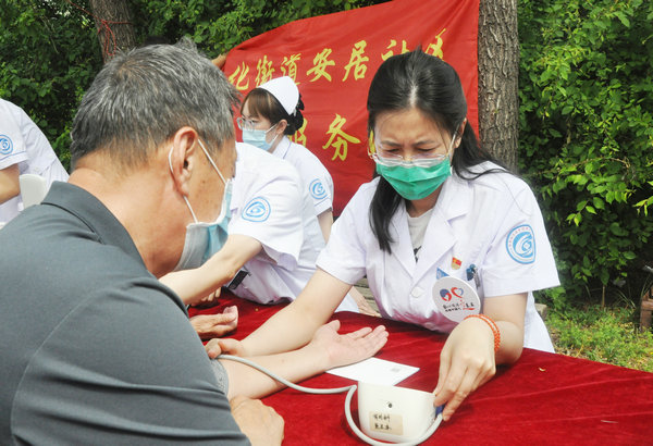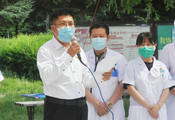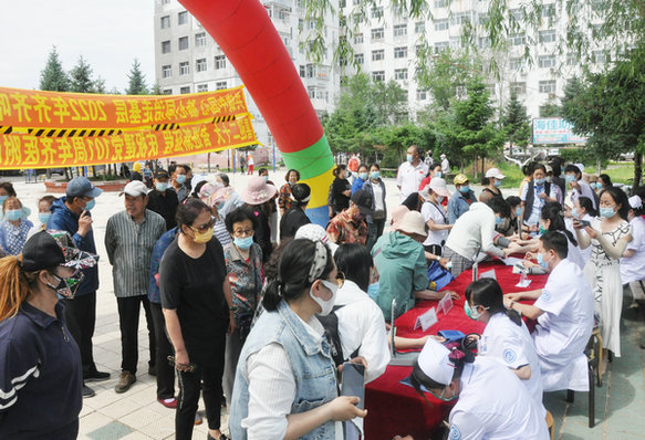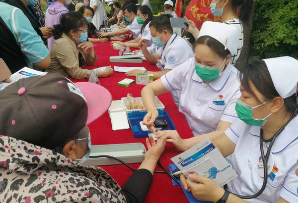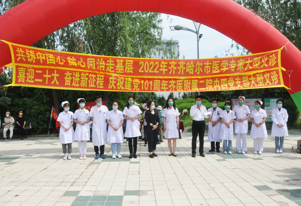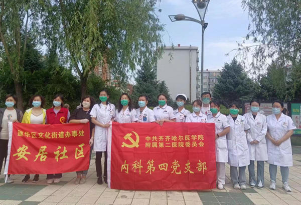 6月10日下午,齐医附属二院内四党支部与文化街道安居社区党委联合举办“喜迎二十大 奋进新征程 庆祝建党101周年”大型义诊活动。纪委书记李亚洲、内四党支部书记、内分泌科一病区主任张健教授分别致辞,文化街道主任付琳蓓出席仪式,安居社区党委书记张达主持仪式,肾内科主任张艳、内分泌科二病区主任何静等20余名党员,携带听诊器、血压计、血糖仪等诊疗设备和常用药品、健康宣传手册,为100余名社区居民进行了义诊宣传。