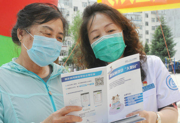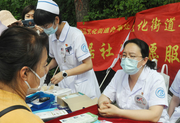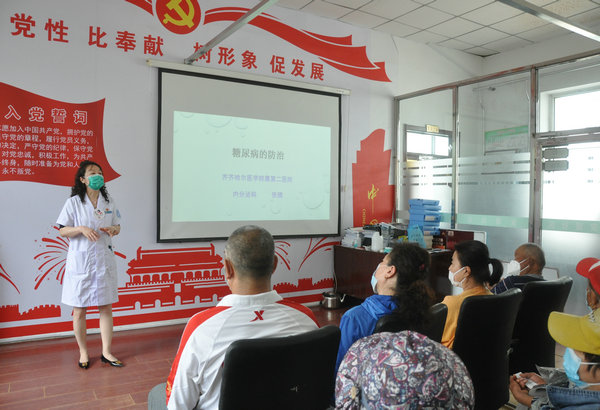 内四党支部书记、内分泌科一病区主任张健向居民传播健康知识