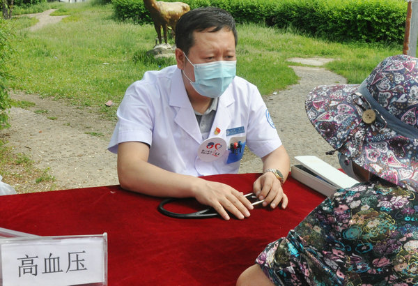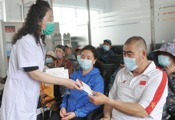 内四党支部书记、内分泌科一病区主任张健为居民免费发放药品