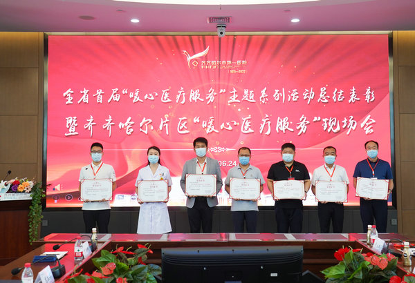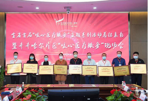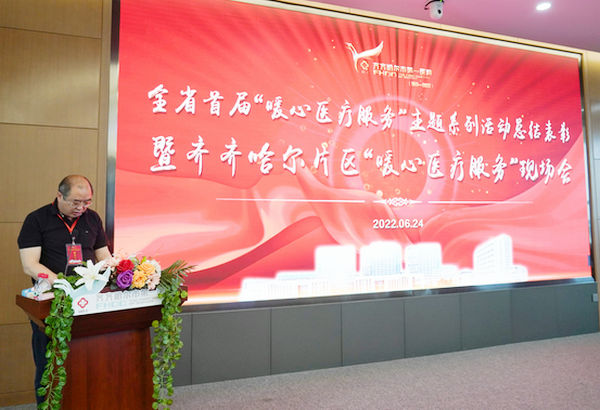 6月24日,全省首届“暖心医疗服务”主题系列活动总结表彰会在齐齐哈尔第一医院举行。活动现场,活动组委会为获得优秀医疗机构、优秀典型案例及优秀示范岗进行了表彰,齐医附属二院荣获“暖心医疗服务”优秀医院和优秀案例双荣誉。本次会议采取线上线下相结合的方式,来自省、市卫健部门及多家医院的领导和主要负责人出席会议。齐医附属二院副院长鲍红光、医务部、行风管理办公室、质量控制办公室(合署)主任于海明、副主任宋丹代表医院受邀参加本次会议。