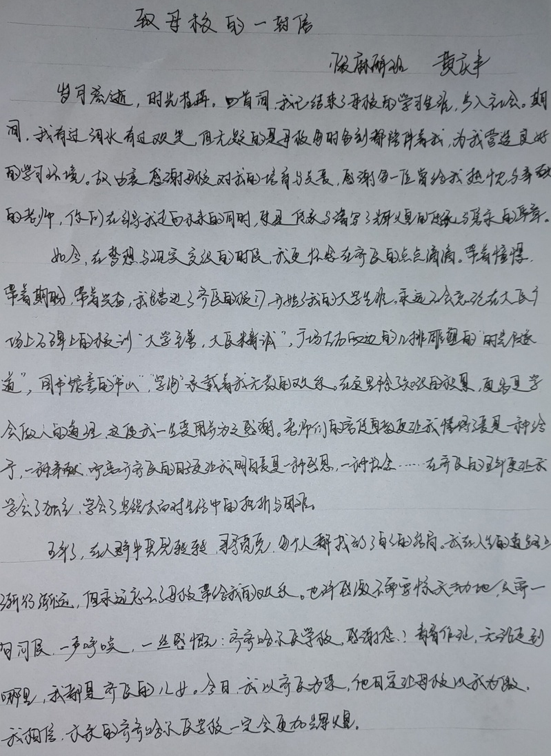 优秀毕业生 关思涵:时光荏苒,岁月无痕,饮水思源,不忘母校培育之恩。感谢母校给予了我五年美好时光,谢谢一路陪伴和栽培,这是我们滚烫的青春里最沸腾的一章。愿有前程可奔赴,亦有青春可回首,以梦为马,不负韶华,前程似锦一路繁花。