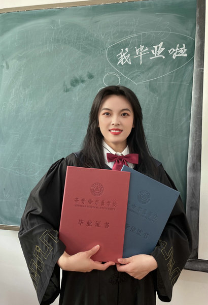 优秀毕业生 曹可馨:很荣幸能够在毕业之际被评为2022届“优秀毕业生”,在此我要感谢齐齐哈尔医学院和附属二院,感谢各位领导和老师的精心栽培!少年怀凌云之志,学习之路没有终点,我希望将来能够成为一名出色的医生,用更加优秀的自己回报母校!