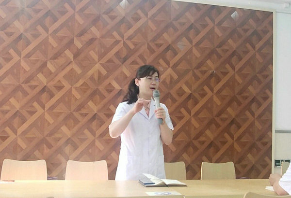 饮食服务中心培训现场,徐迪副主任采用理论与实操相结合的方式为大家细致讲解了胸痛患者发病特征、急救方式、急救电话、心肺复苏的定义、意义及相关救治流程和注意事项;并对如何判断患者是否丧失意识、有无自主呼吸、有无脉搏搏动等心肺复苏操作要领进行了重点讲解,并强调了“黄金4分钟”的意义。