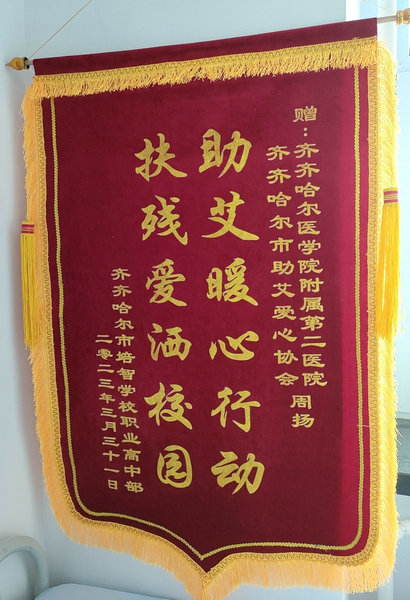 活动中,培智学校的孩子们通过绘画、文艺汇演充分展示才艺和技能,展现出特殊教育儿童勇于克服生理心理障碍、乐于融入社会的美好愿望。活动结束为表示对周扬主任多年来的帮助,培智学校送上一面锦旗以示谢意。