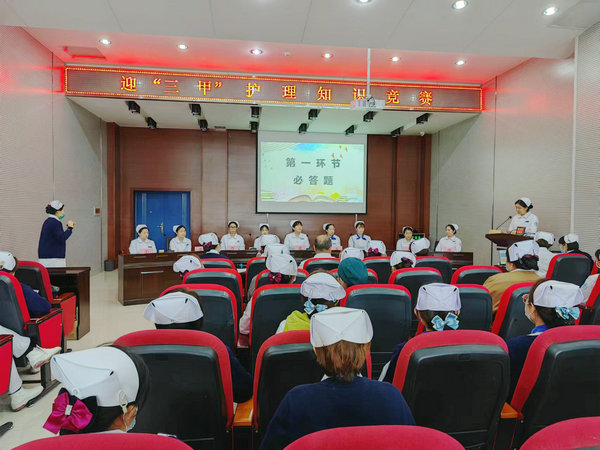 4月14日—25日,护理部在全院范围内开展了“5•12”国际护士节系列活动暨迎“三甲”护理知识竞赛。共计43名护士参加初赛,9名护士进入决赛。副院长鲍红光、护理部主任孙晶、护理部副主任马月仙、内科系护士长董美宏、心血管内科一病区护士长汪明杰担任评委,护理部王思蕊主持活动,各临床科室护士长及护理人员80余人观摩比赛。