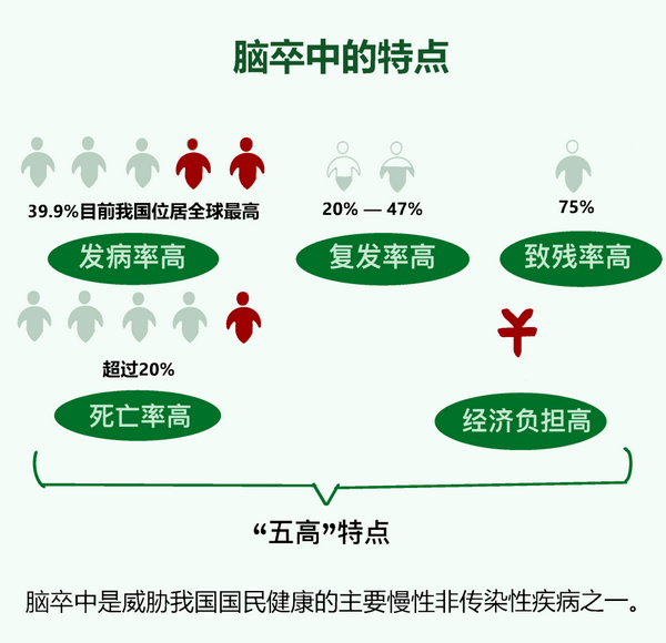 卒中的发病率:中国每年新发卒中病例约340万(全球占比约30%),卒中发生后每分钟约有190万个脑细胞死亡,而我国40岁及以上人群现患人数已达1242万,平均每10秒就有1人初发或复发。