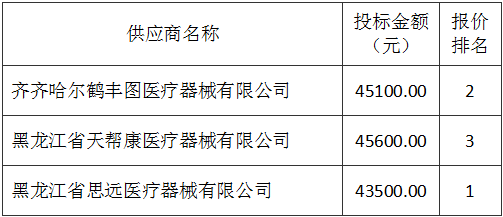 本次询价最低供应商:黑龙江省思远医疗器械有限公司,进入第二轮院内议价环节。