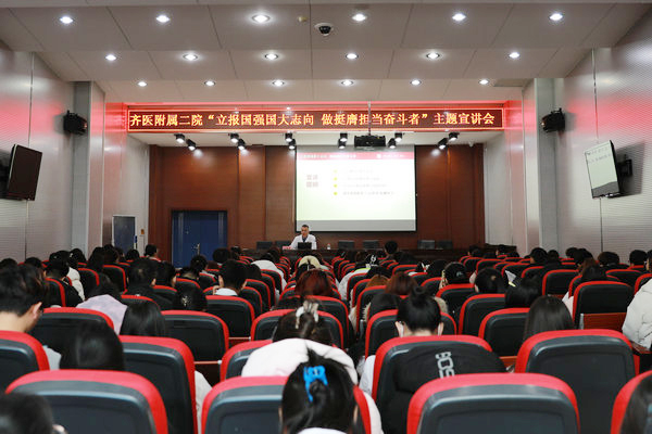 11月22日上午,齐医附属二院举办“立报国强国大志向 做挺膺担当奋斗者”主题宣讲会,党委书记刘增良同志作主题宣讲,全体在院本科生、住培医师、研究生党员以及团干部、班干部共计200余人聆听宣讲。