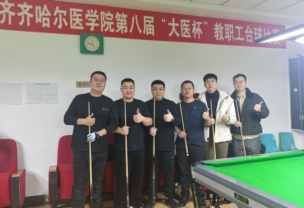 11月22日,齐齐哈尔医学院第八届“大医杯”教职工台球比赛在学院台球活动室成功落下帷幕,本次比赛共计8个代表队40余名教职工参赛,齐医附属二院喜获团体赛冠军、个人赛第三名。