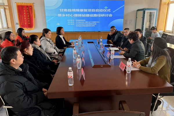 启动仪式上,副院长孙正海介绍了附属四院的医教研实力,并表示医院将为精障康复提供专业技术支持与规范化指导。甘南县民政局副局长娄冰冰表示,民政部门将统筹资源,为项目落地与驿站建设提供政策与场地保障。研讨交谈环节中,多方代表的发言进一步明确了合作矩阵的构成与分工。这一协同模式旨在整合行政力量、专业医疗、学术研究与一线社工服务,形成服务基层心理健康的合力。