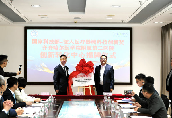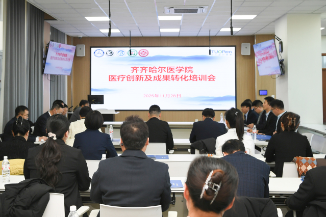 致辞结束,张可勇副书记代表学院与驼人集团正式签订校企协同创新战略合作框架协议,并为“齐齐哈尔医学院-驼人集团高性能医疗器械联合研发中心”揭牌;武立刚院长等学院附属医疗机构与驼人集团同步签订医企协同创新战略合作框架协议,为“创新转化中心”揭牌。两大平台的建立标志着双方合作进入实质推进阶段。会后,驼人集团紧密结合行业需求与实践案例,以“创新转化铁三角模型”“从临床痛点需求到高价值方案设计”“临床科研的专利设计与申请实战”为题,开展了医疗创新及成果转化专题讲座培训,附属二院领导班子成员、职能科室、临床科室负责人、学术骨干及医疗卫生新技术推广项目主要完成人参加培训。