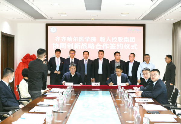 齐医学院党委副书记张可勇代表学院与驼人集团轮值总裁王振签约