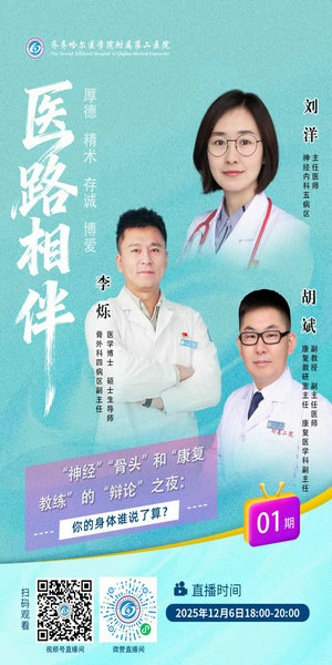 12月6日,齐医附属二院“医路相伴”科普首播圆满结束,来自神经内科、骨外科、康复医学科三位权威专家做客医院官方视频号直播间,以“神经、骨头和康复教练的“辩论”之夜:你的身体谁说了算”为主题,向广大百姓科普医学知识。直播间吸引了5千余名观众在线观看,点赞互动超过10万次,这标志着齐医附属二院在“互联网+健康科普”领域的创新尝试取得开门红。