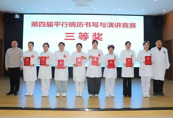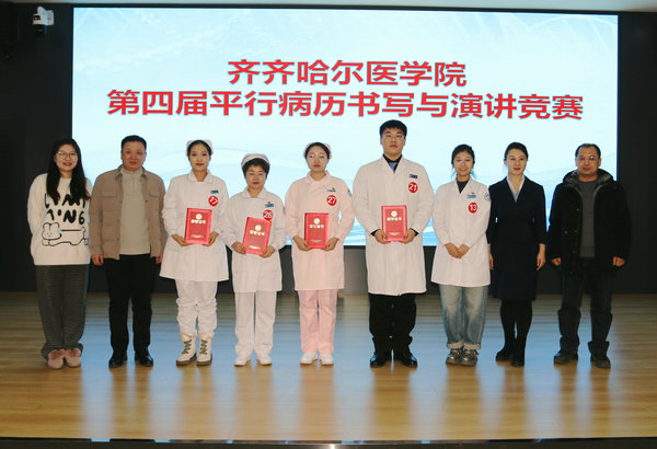 12月16日下午,由齐齐哈尔医学院主办、附属三院承办的第四届平行病历书写与演讲竞赛决赛在附属第三医院门诊综合楼四楼多功能厅举行。医院管理处首席研究员李春旭作总结讲话,附属第三医院党委书记孙茂林为竞赛致辞,医院管理处副处长现场宣读竞赛规则,附属第二医院副院长刘波出席大赛担任评委,附属第二医院医院办公室副主任王志超主持竞赛,来自附属第一、二、三、五(大庆龙南医院)、八(大庆市第三医院)、十一(北大荒集团总医院)6所附属医院的30名选手参加此次竞赛。经过激烈角逐,齐医附属二院参赛选手咸阳荣获一等奖,关宝宇荣获二等奖,邢芳芳、姜佳瑶、王晓荣获三等奖。