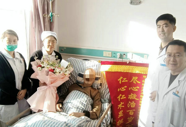 百岁老人陈爷爷及其家属为骨外科一病区赠送锦旗