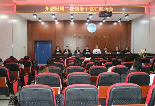 1月4日下午,齐齐哈尔医学院附属第二医院领导干部任职大会在临床技能中心一楼多功能厅举行,学院党委副书记张可勇同志、党委办公室副主任鲁巍同志出席大会,医院党委书记刘增良同志主持会议,医院全体领导班子成员、机关行政后勤负责人参加会议。