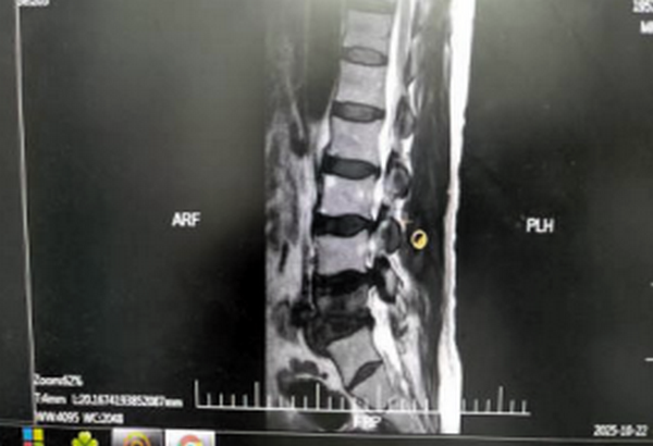 齐医附属二院骨外三病区病人马大爷,2个月前出现腰部疼痛及左侧下肢麻木症状,当时未重视,未经性系统治疗。近期症状加重,休息后症状不缓解,疼痛症状导致马大爷无法像正常人一样平躺,只能坐着睡觉,使得马大爷苦不堪言,通过多方介绍,联系到齐齐哈尔医学院附属第二医院骨外三病区刘艳楠副主任医师,刘主任看到病人后,进行查体,完善相关检查,MR示:腰椎间盘突出伴椎管狭窄。