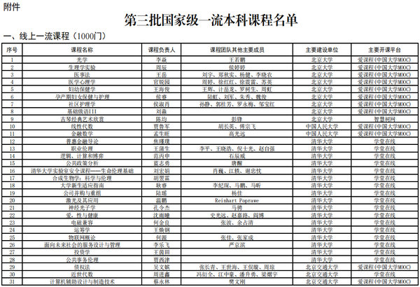 第三批国家级一流本科课程名单