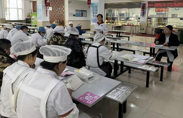 会上,食品安全员汇报了近期市场监督管理局来院检查中发现的问题和整改情况,并对第一季度开展的厨师争霸赛进行总结。
