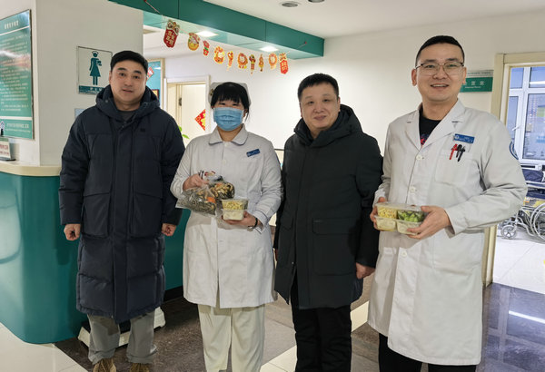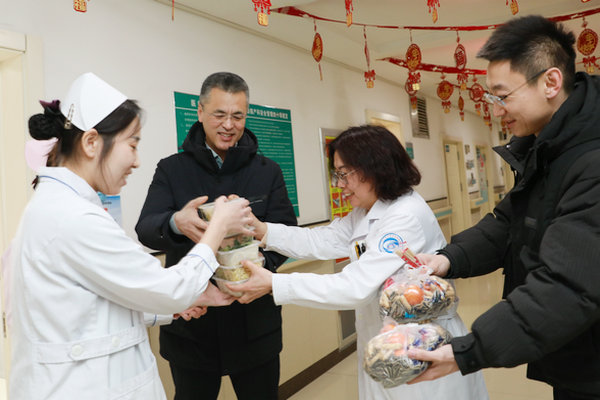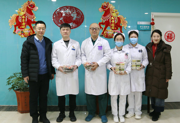 金蛇辞岁留瑞气,骏马迎春启新程。2月16日,正值万家团圆的除夕之夜,齐医附属二院党委书记刘增良、院长、党委副书记武立刚携全体领导班子成员,带领相关科室负责人深入一线,看望并慰问春节期间仍坚守在工作岗位上的值班人员,为他们送去热腾腾的饺子、丰盛的菜肴以及新春的美好祝福。