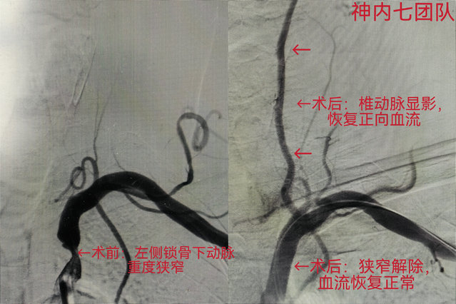 神经内七科副主任刘建鑫在详细询问病史后,没有简单依赖既有检查结果,而是为患者进行了细致的体格检查,正是这份“不放过任何细节”的职业敏感,让他在查体时敏锐地发现了一个异常信号:患者左手竟然触摸不到脉搏,且双侧上肢的收缩压压差明显大于正常范围。这一关键体征立即引起了团队的高度警惕,迅速为患者安排了血管超声及脑血管造影检查,最终明确诊断为—锁骨下动脉盗血综合征,这正是导致其脑部供血不足、症状反复的“罪魁祸首”,若不及时处理,未来发生脑梗死风险极高。